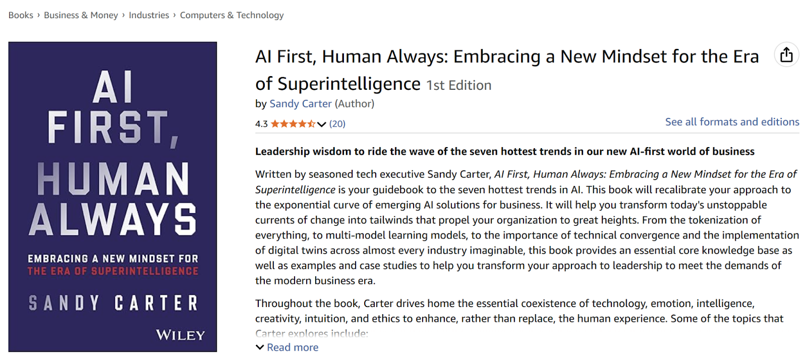 [출처] Sandy Carter 자체 연구 (성공한 AI 기업 20% 분석) / 《AI First, Human Always》