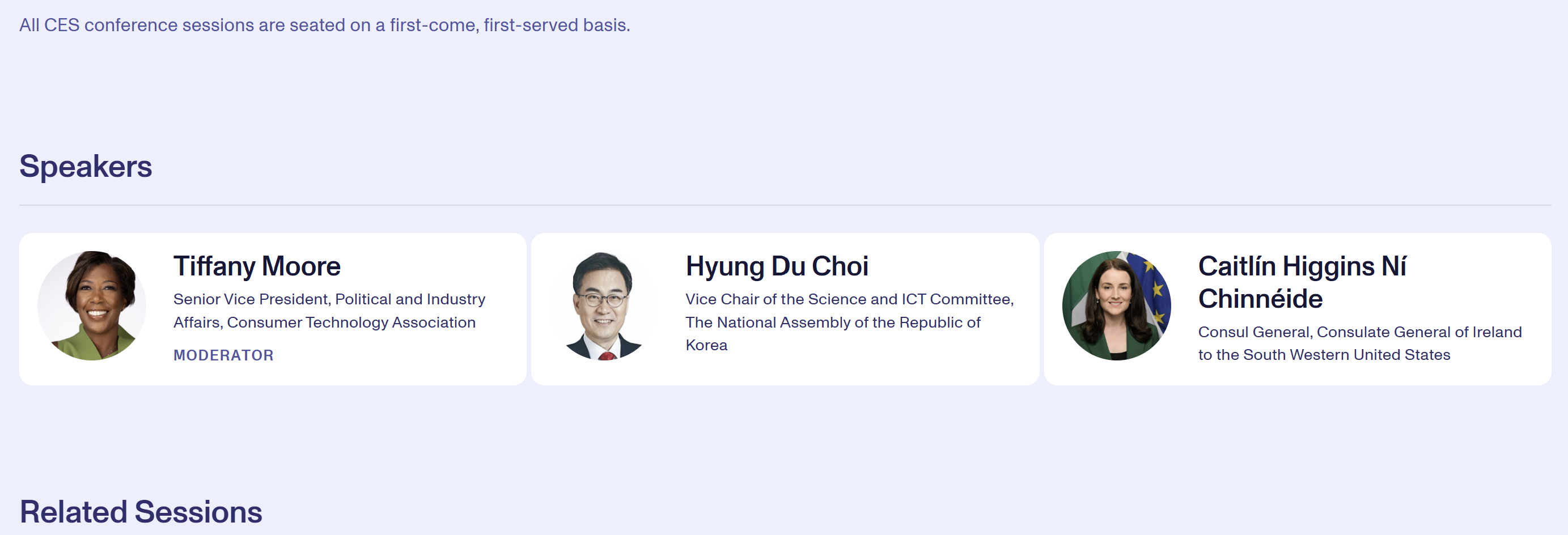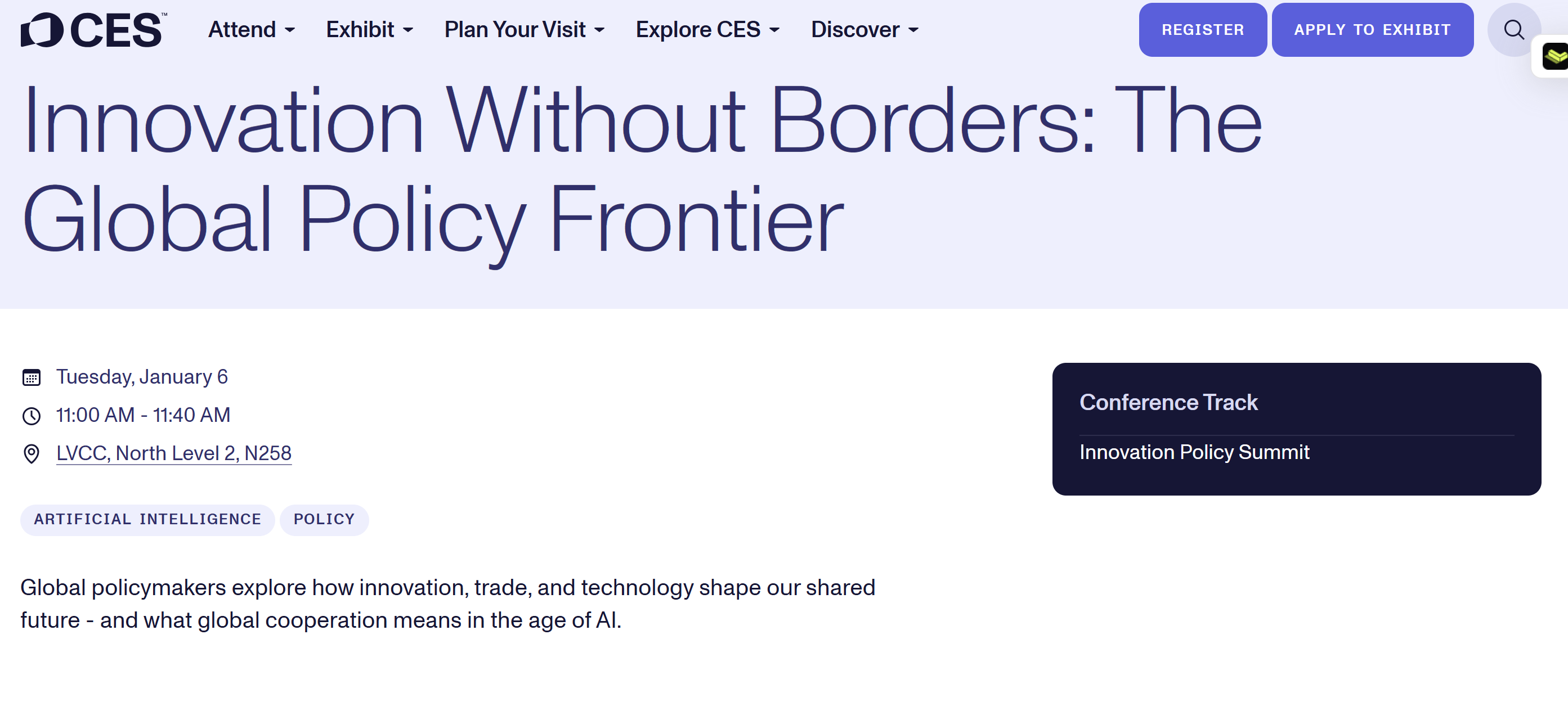 미국 정부 인사 외에도 150개국 이상의 정부 관계자들이 CES 2026에 참가한다. 요비타 넬리웁시에네(Jovita Neliupšienė) 주미 EU 대사, 최형두 국회 AI·ICT 특별위원회 부위원장 등 글로벌 정책 리더들도 참석해 글로벌 기술정책 논의에 나선다.