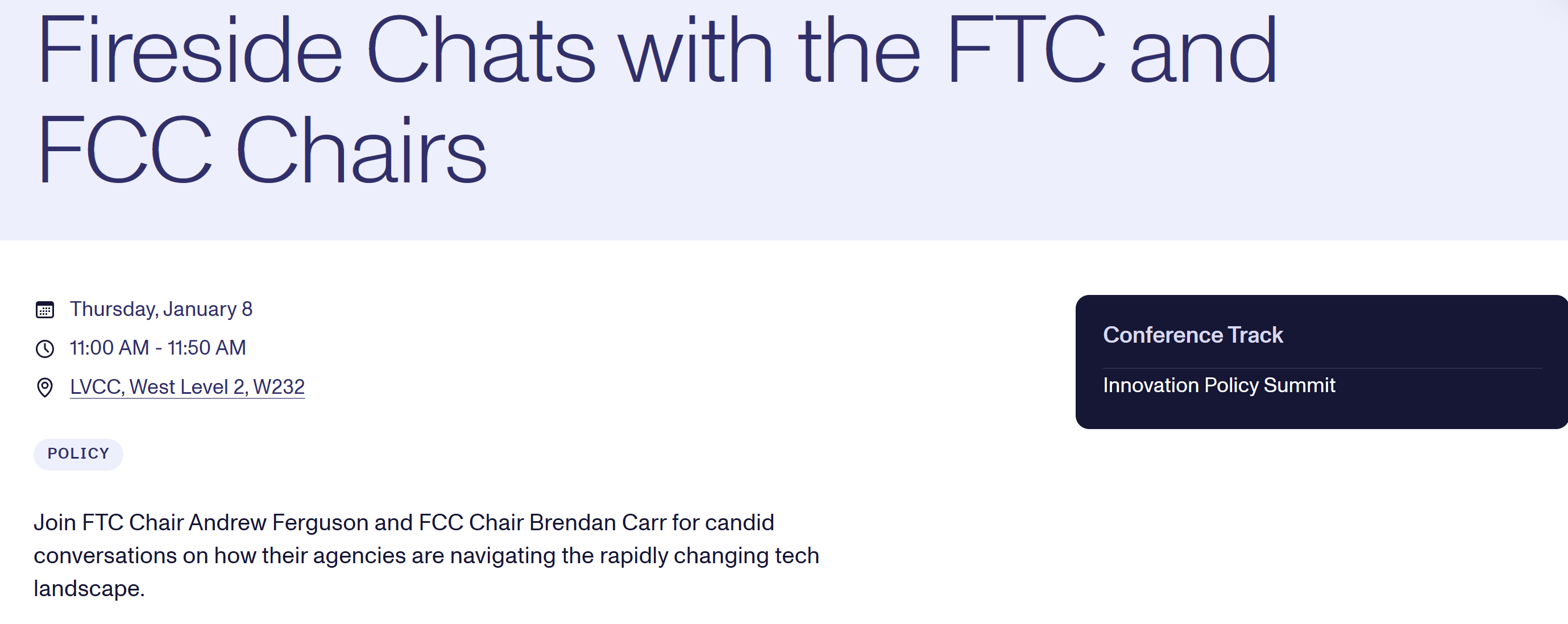 카 FCC 위원장과 퍼거슨 FTC 위원장은 1월 8일부터 시작되는 'Conversation with a Commissioner' 시리즈에서 게리 샤피로(Gary Shapiro) CTA CEO와 함께 급변하는 기술 환경에서의 규제 방향을 논의한다. 두 위원장 모두 트럼프 2기 행정부 출범과 함께 임명된 인사들로, 바이든 행정부와 차별화된 규제 기조를 밝힐 것으로 관측된다.