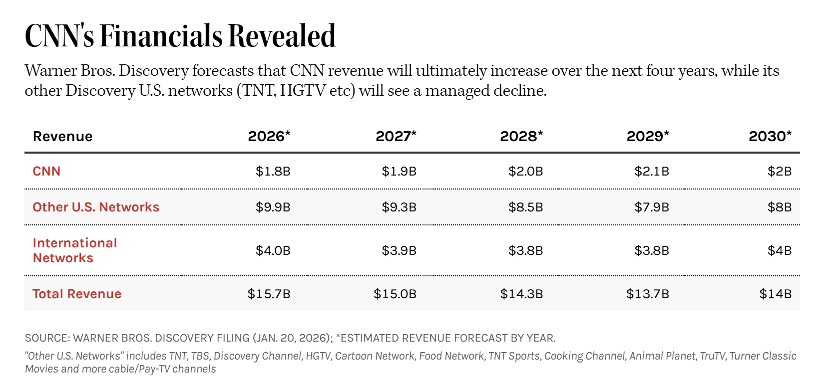WBD, SEC 공시서 CNN 재무 첫 공개…2030년 신규 플랫폼 매출 6억 달러 목표