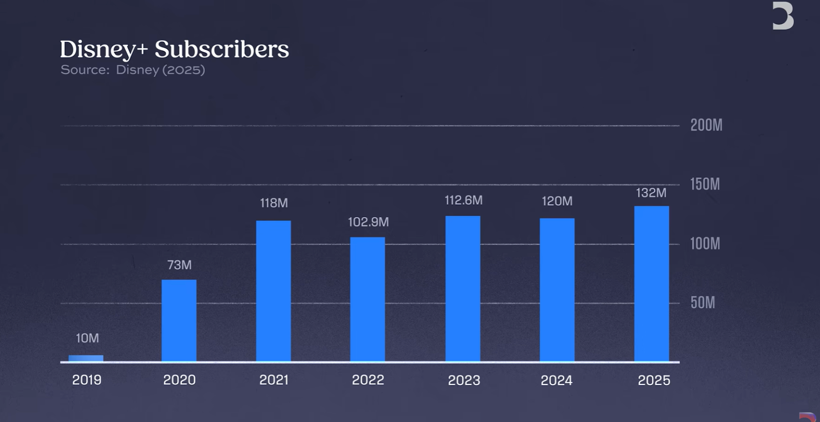 넷플릭스(Netflix)가 스트리밍 붐을 일으킨 후 6년 뒤인 2019년, 디즈니는 디즈니 플러스(Disney+)를 출시했다.