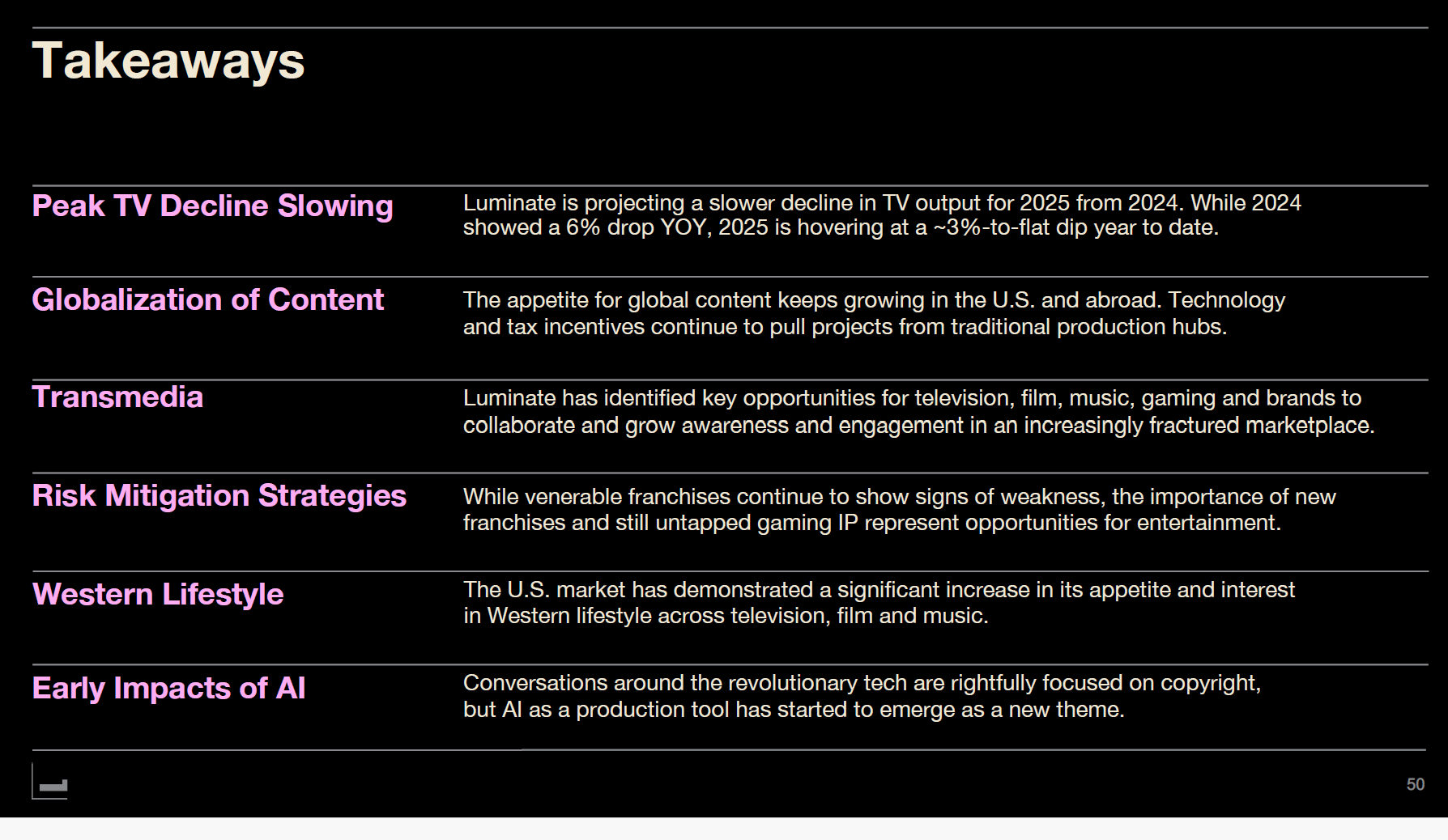 Based on vast information collected from over 50 countries and 500+ data providers, Luminate presented seven trends shaping the 2025 entertainment industry. The company tracks 19 billion daily audio streams, over 6 billion minutes of streaming video viewing, and more than 300 million content identifiers.