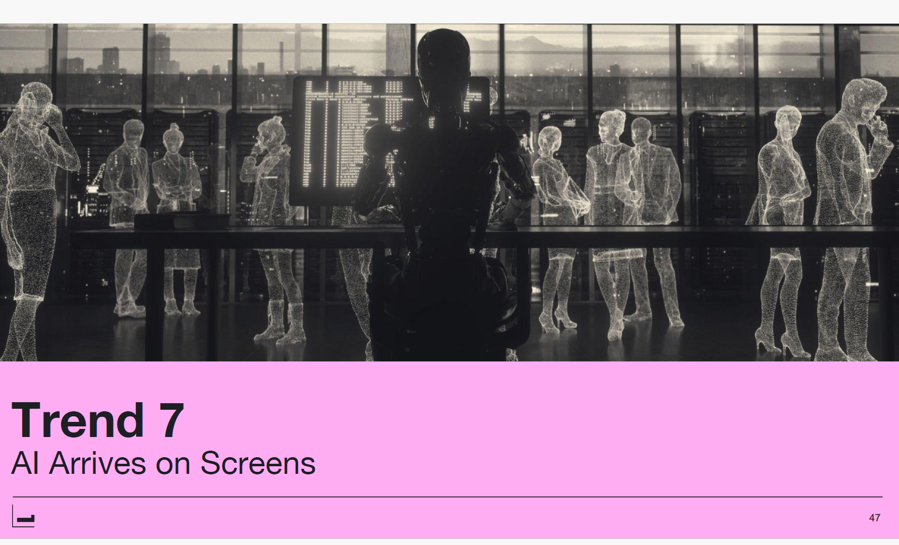 프레젠테이션의 마지막 섹션은 AI였다. 호비치 부사장은 "AI에 관한 대화의 대부분은 저작권 보호에 관한 것이고, 당연히 그래야 합니다"라고 전제한 후, 영화와 TV 제작에 미치는 다른 영역들을 간략히 다뤘다.