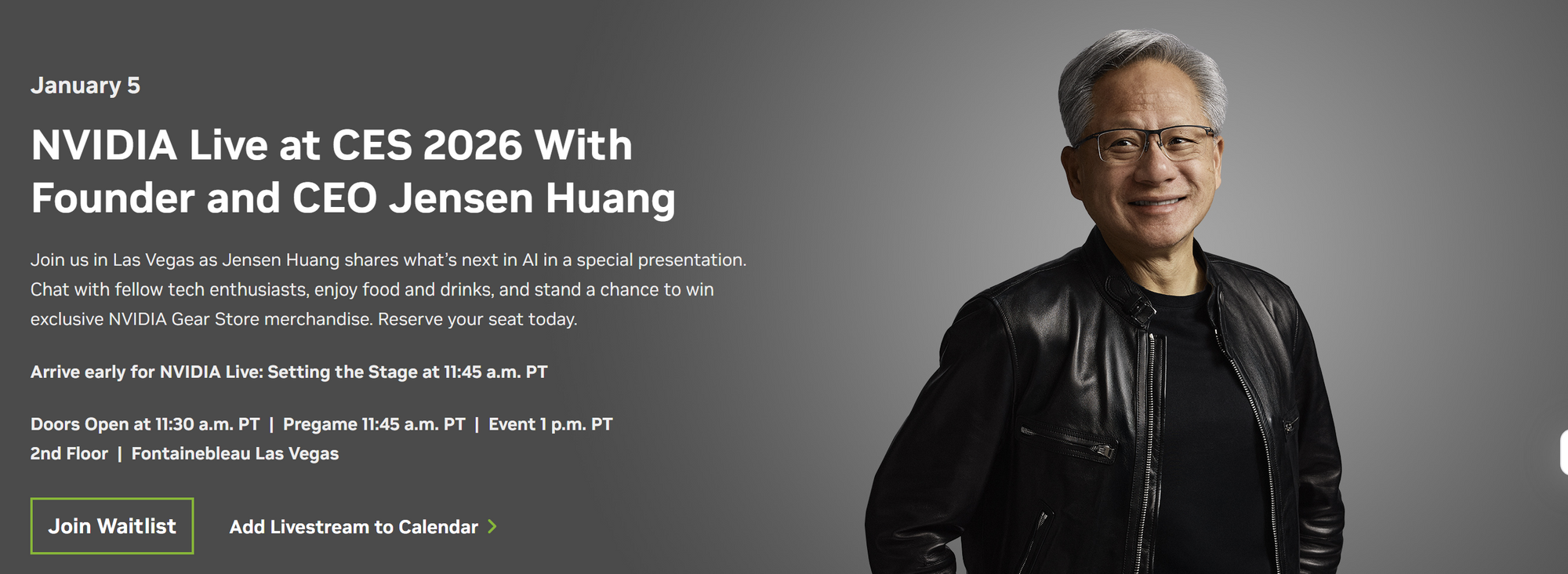 엔비디아(Nvidia)의 창업자이자 CEO인 젠슨 황(Jensen Huang)은 1월 5일(월요일) 기조연설을 통해 AI 산업의 방향성을 제시할 예정이다. 공식 개막일 하루 전에 진행되는 이 연설은 시장을 움직일 핵심 변수로 꼽힌다. 지난 5년간 1,300% 이상 상승한 엔비디아 주가가 젠슨 황의 예측력을 증명하는 만큼, 이번 발언 역시 글로벌 테크·미디어 업계에 상당한 영향을 미칠 것으로 전망된다.