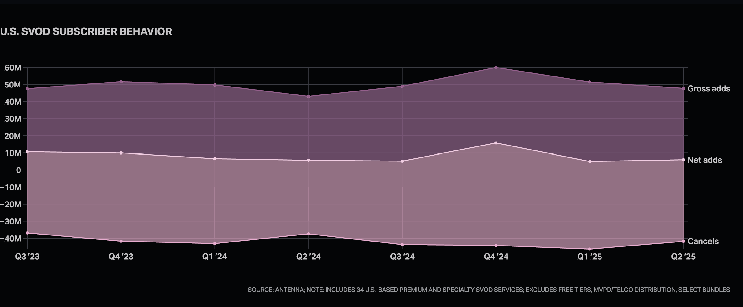 The explosion of ad-supported subscription tiers is the defining structural indicator of this shift. In the U.S. and Western Europe, the revenue share coming from ad-inclusive plans surged from under 5% in 2020 to 28% in 2025. Cost-conscious consumers moved to cheaper ad-supported options — and platforms converted that migration into a dual-revenue structure, collecting subscription fees and advertising dollars simultaneously. Ampere Analysis notes that this cost-sensitive behavior is no longer confined to North America: it has spread broadly across Western Europe.