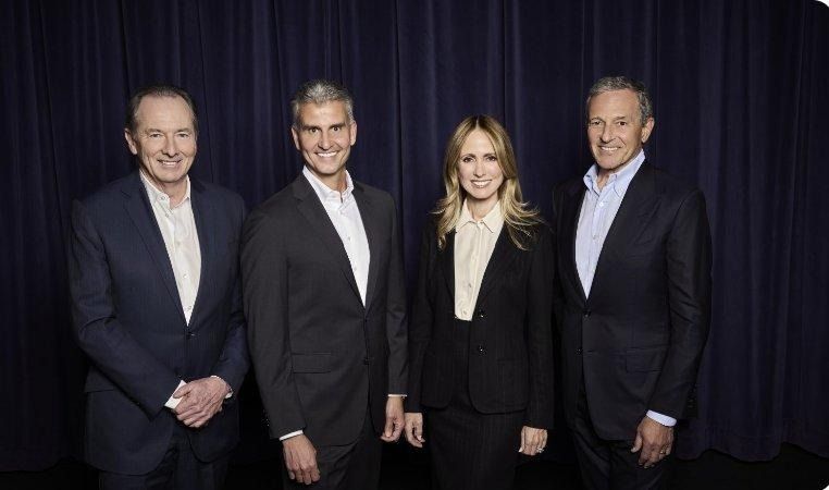 디즈니 신임 경영진 | 왼쪽부터 제임스 고먼(이사회 의장), 조시 다마로(차기 CEO), 데이나 월든(CCO), 밥 아이거(현 CEO) | 사진: The Walt Disney Company