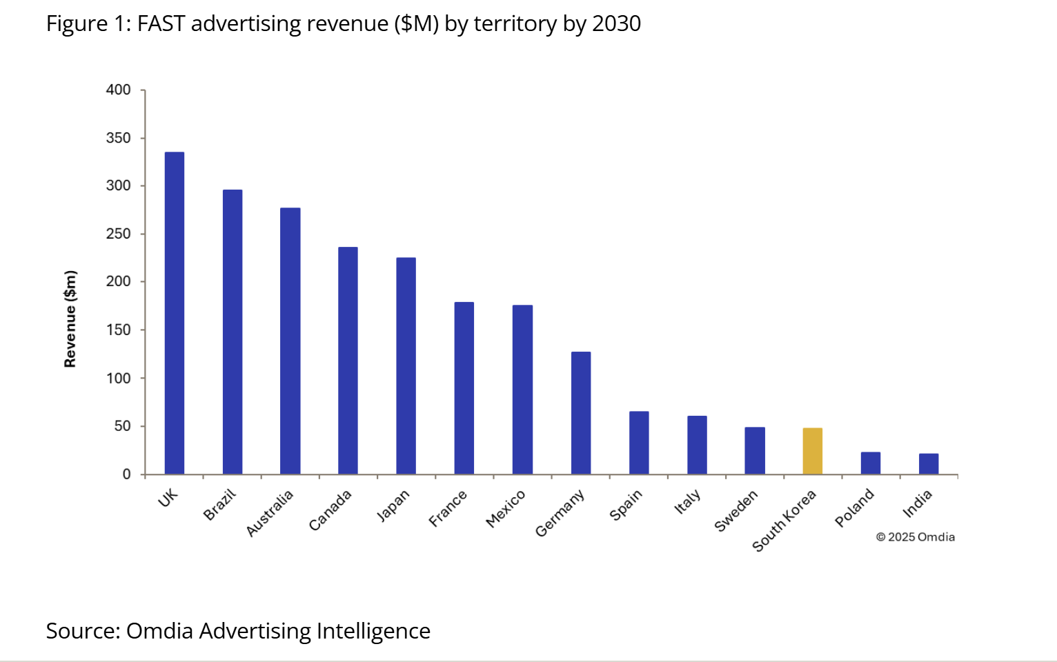- Korea market size projection (2030): Approximately $50 million (world's 12th largest FAST market)
