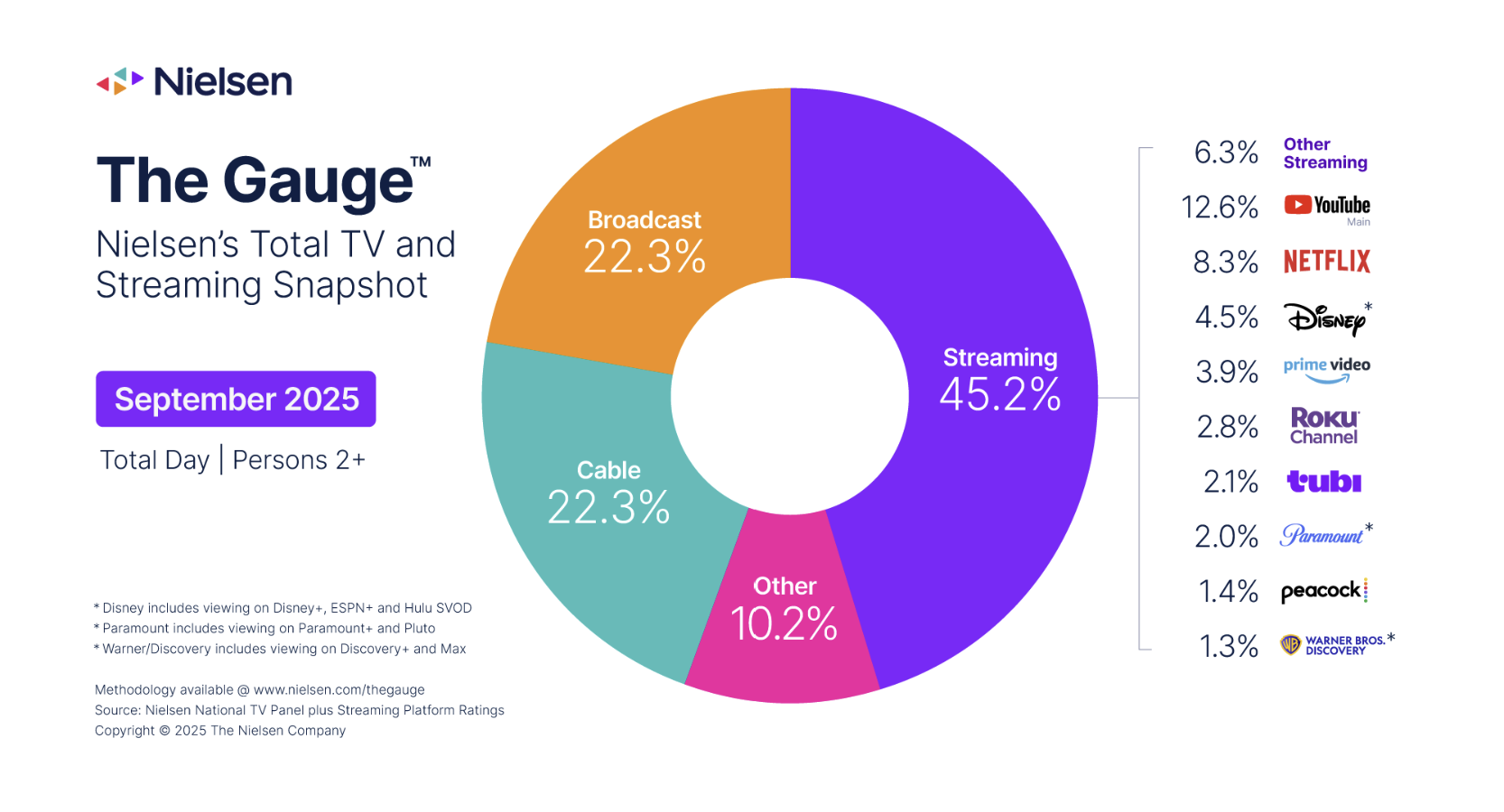 - 25% of US streaming viewing time (projected 33% by early 2026)
