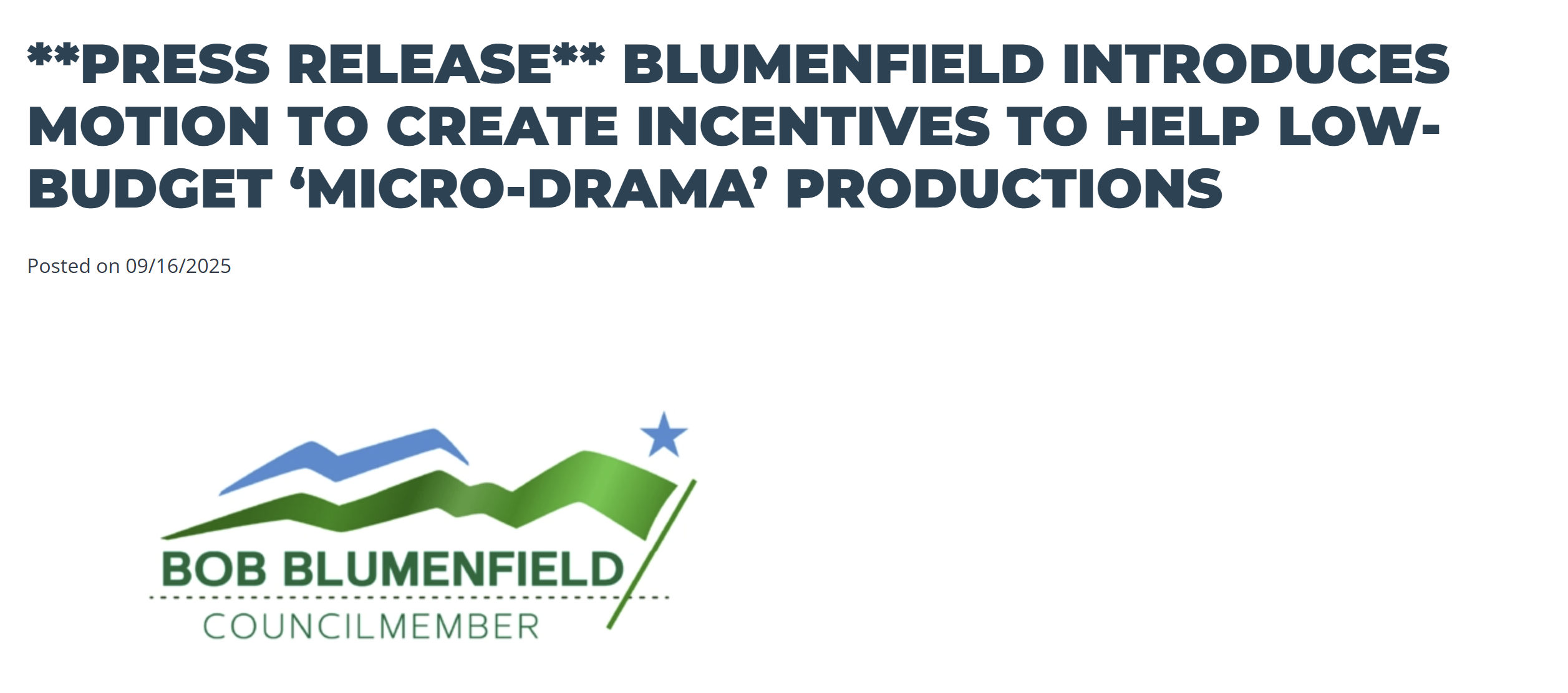블루멘필드 의원의 형 제이 블루멘필드(Jay Blumenfield)는 TV 업계 베테랑으로, MyDrama 플랫폼에서 Her Heart, Held Hostage와 Hired to Obey를 제작했다. 그는 마이크로드라마의 사회적 의미를 강조했다.