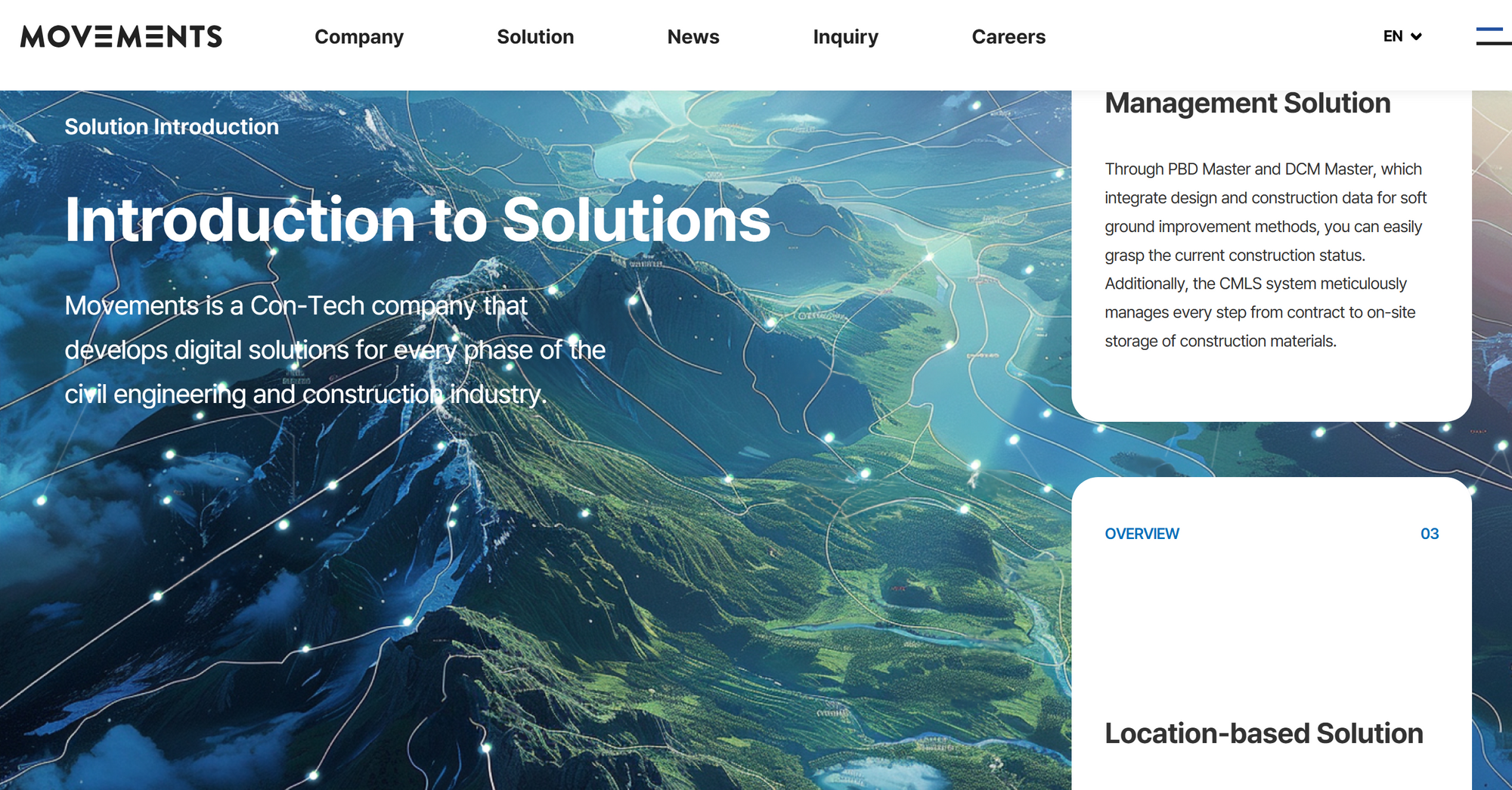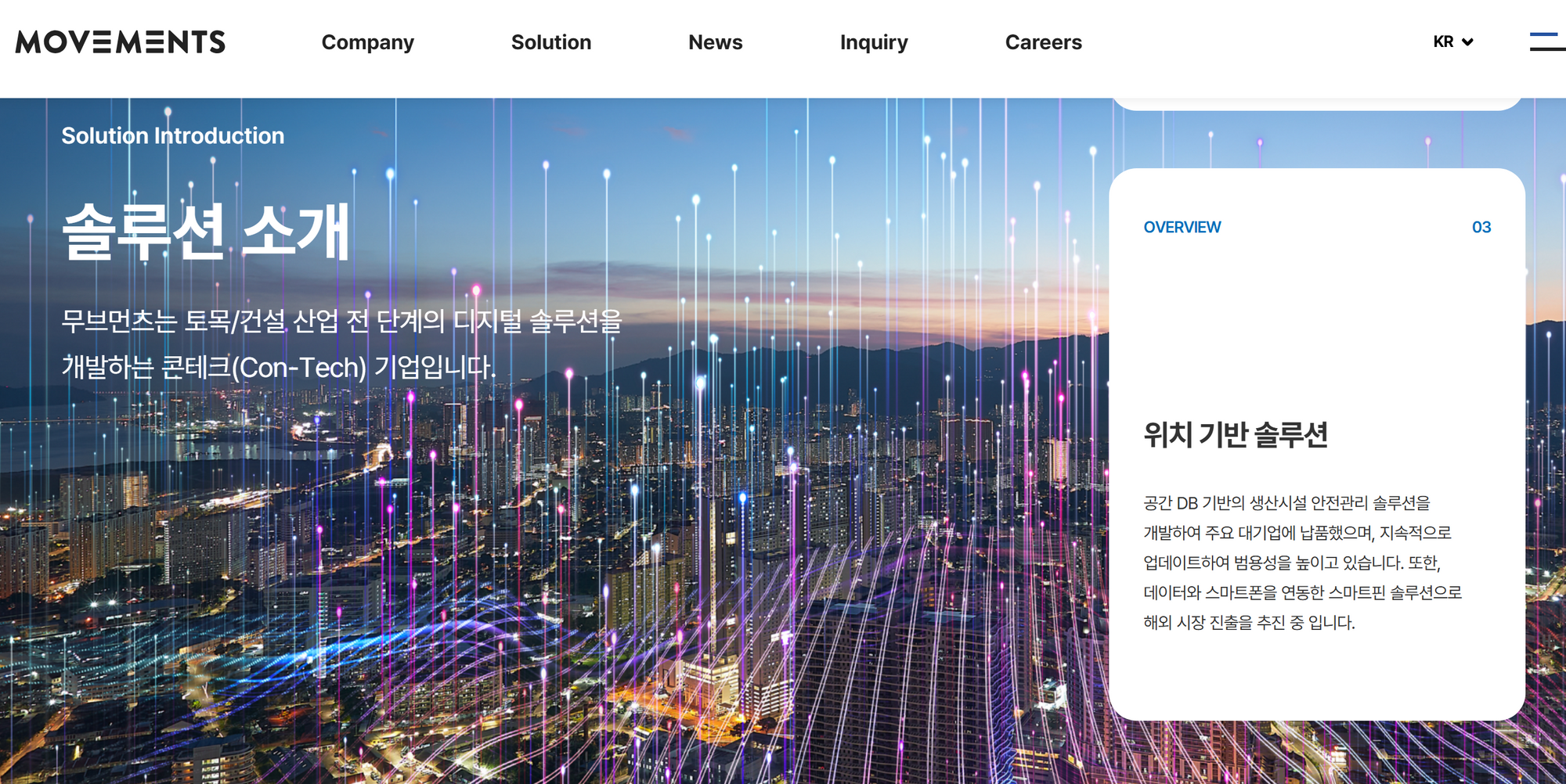Movements is leading digital innovation in the smart construction industry for underground facilities both domestically and internationally by utilizing cutting-edge technologies such as digital twin, AR, VR, big data, GIS, and IoT, establishing itself as a representative company driving the global expansion of K-Tech.