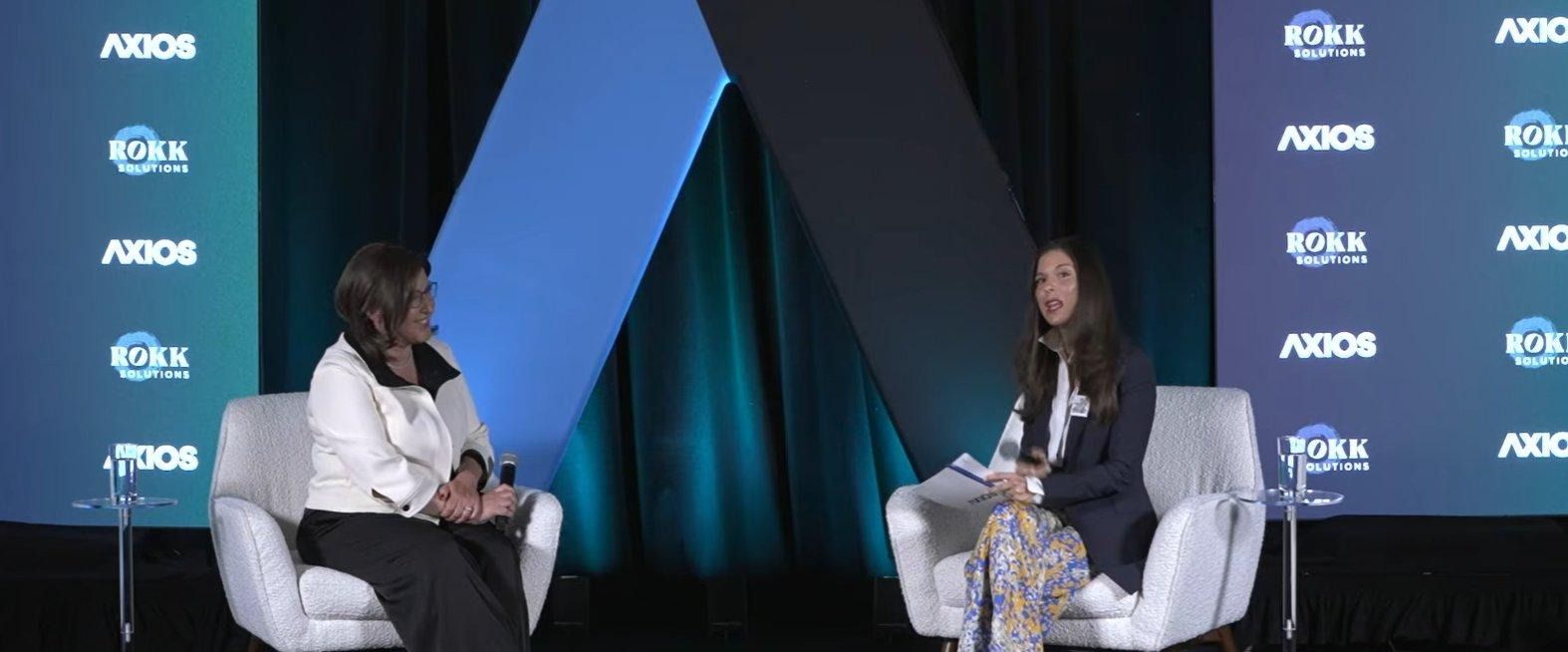 MS Now President Rebecca Kutler (left) speaks with Axios media reporter Sara Fischer at Axios Live's annual WHCD weekend kick-off brunch in Washington, D.C., April 24. Photo: Denny Henry for Axios
