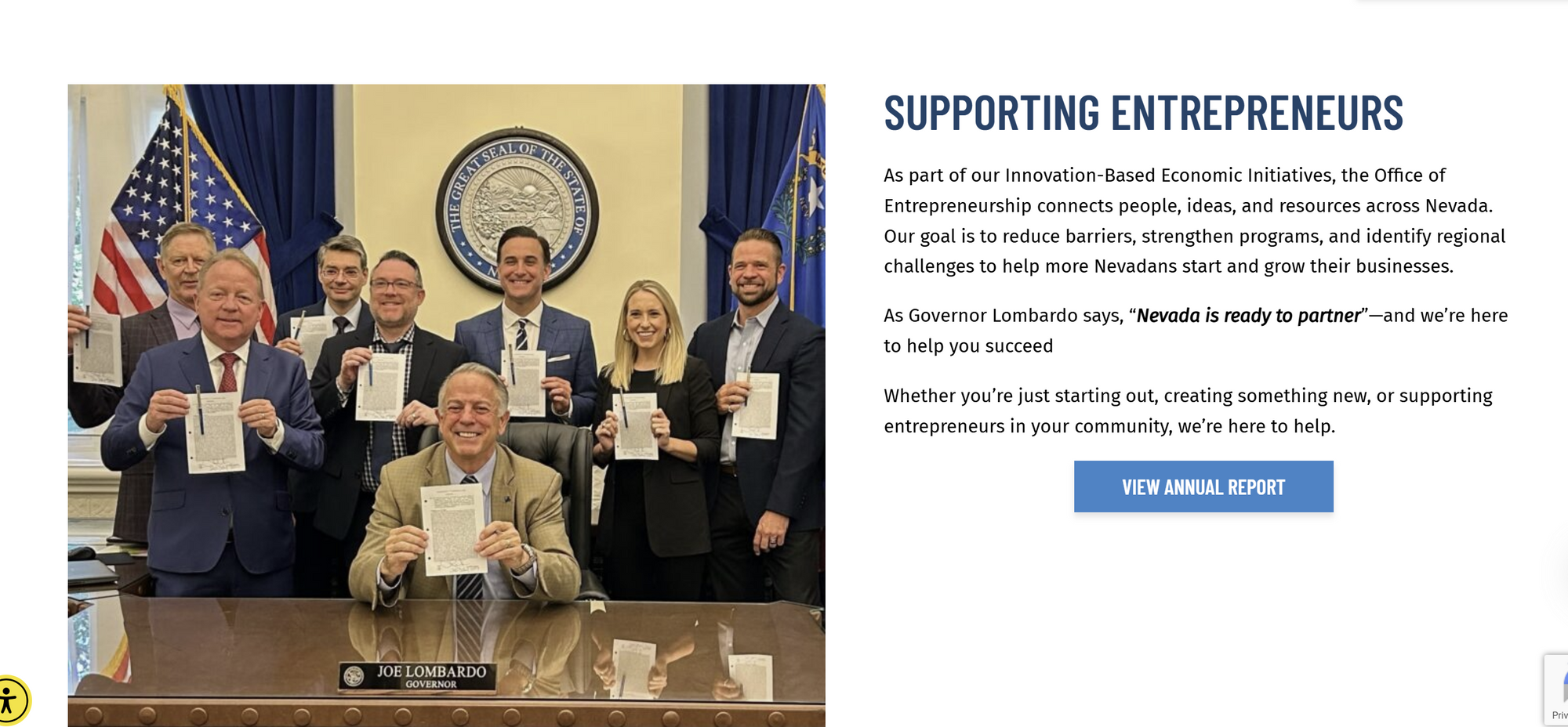 기업가정신사무국(GOED’s Innovation-Based Economic Development division)은 GOED의 혁신기반경제개발부 소속으로, 네바다의 기업가와 중소기업이 성공에 필요한 자원과 연결될 수 있도록 지원한다.