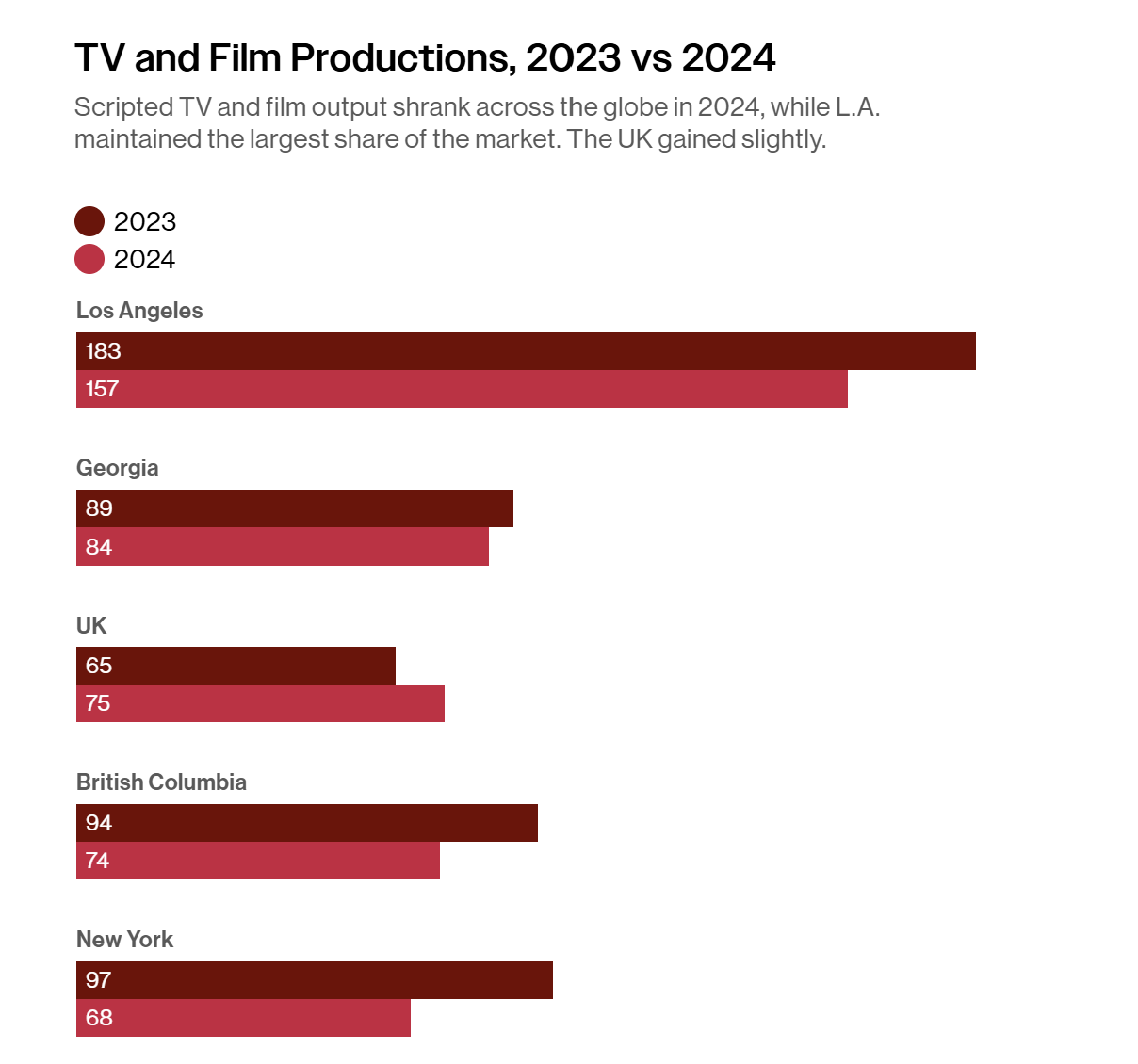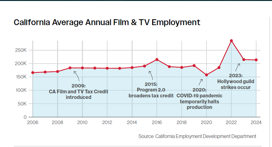 California film and TV employment has been declining since peaking in 2022.