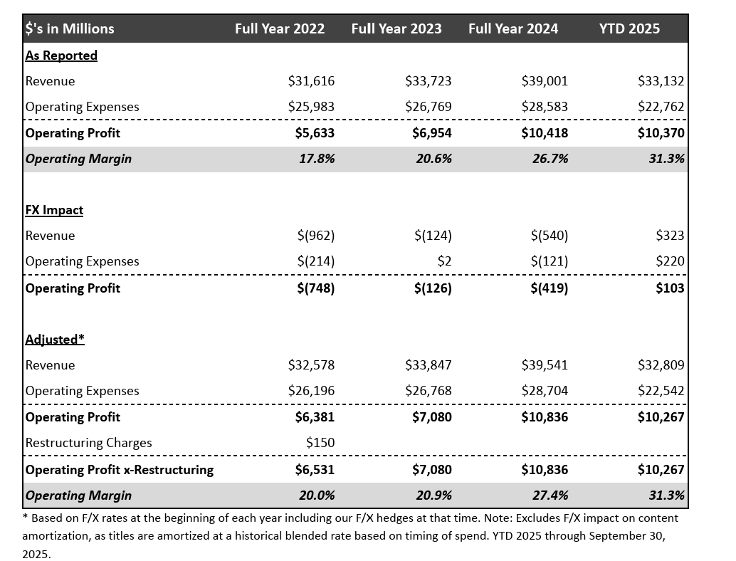 In a letter to shareholders, Netflix explained the shortfall: "Operating margin of 28% was below our guidance of 31.5% due to an expense related to an ongoing dispute with Brazilian tax authorities that was not in our forecast. Absent this expense, we would have exceeded our Q3'25 operating margin forecast."