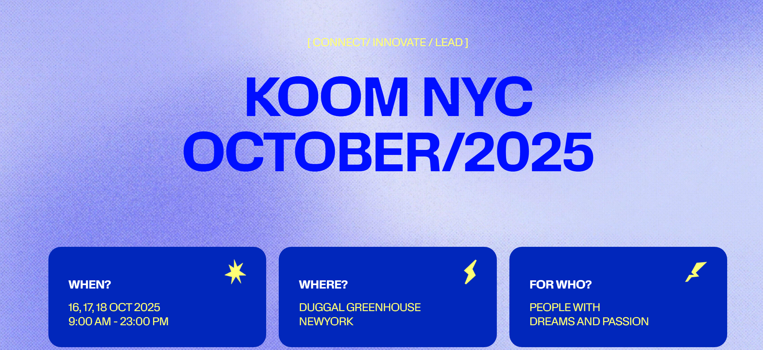 KOOM Festival 2025 is a three-day global event in New York City, organized by United Korean Founders (UKF), celebrating the intersection of Korean innovation, entrepreneurship, and culture. It will take place from October 16–18, 2025, at the Duggal Greenhouse in the Brooklyn Navy Yard.