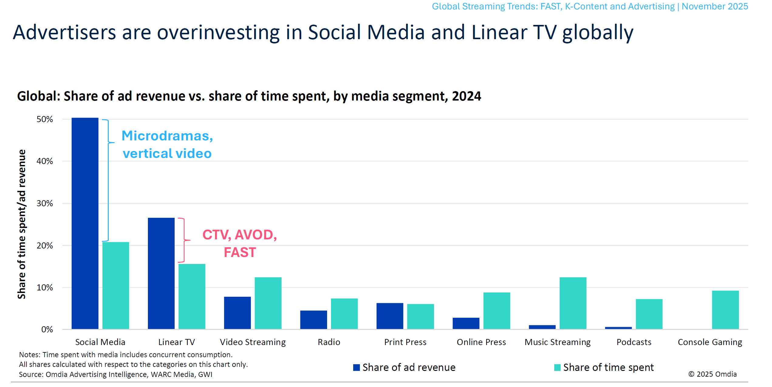 스페인어권 미디어 기업 텔레비사유니비전(TelevisaUnivision)은 2025년 30여 편의 마이크로드라마를 선보였으며, 2026년에는 100편까지 제작을 확대할 계획이다. ESPN은 AI 내레이션을 활용한 인터랙티브 스포츠 숏폼 '스포츠센터 포 유(SportsCenter for You)'를, 폭스(Fox)는 신규 스트리밍 서비스 '폭스 원(Fox One)'에 숏폼 콘텐츠를 탑재했다.