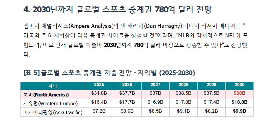 ์ด ๋ณด๊ณ ์๋ ๋ฏธ๊ตญ ์์ฅ์ ๋ณํ๊ฐ ํ๊ตญ ์คํฌ์ธ ๋ฏธ๋์ด ์ฐ์ ์ ์ฃผ๋ ์ ๋ต์ ํต์ฐฐ์ ์ ๊ณตํฉ๋๋ค: