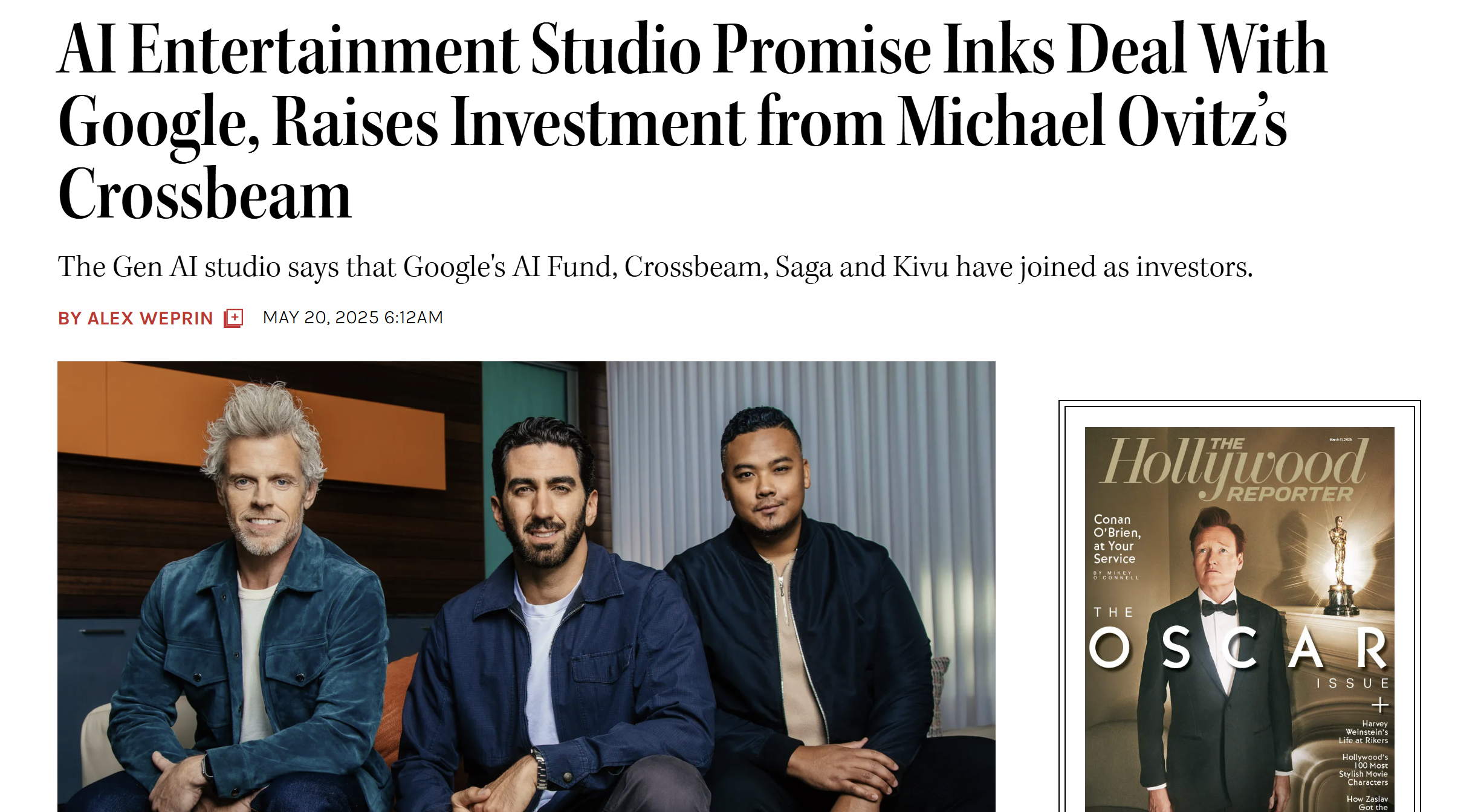 두 번째는 프로미스(Promise)다. 풀스크린(Fullscreen) 전 CEO 조지 스트롬폴로스, 유튜브 출신 임원 제이미 번, 제너레이티브 AI 전문가 데이브 클라크가 함께 만든 AI 스튜디오로, 피터 처닌의 더 노스 로드(The North Road Company)와 VC 안드리센 호로위츠(a16z)가 초기 투자자로 참여했다.