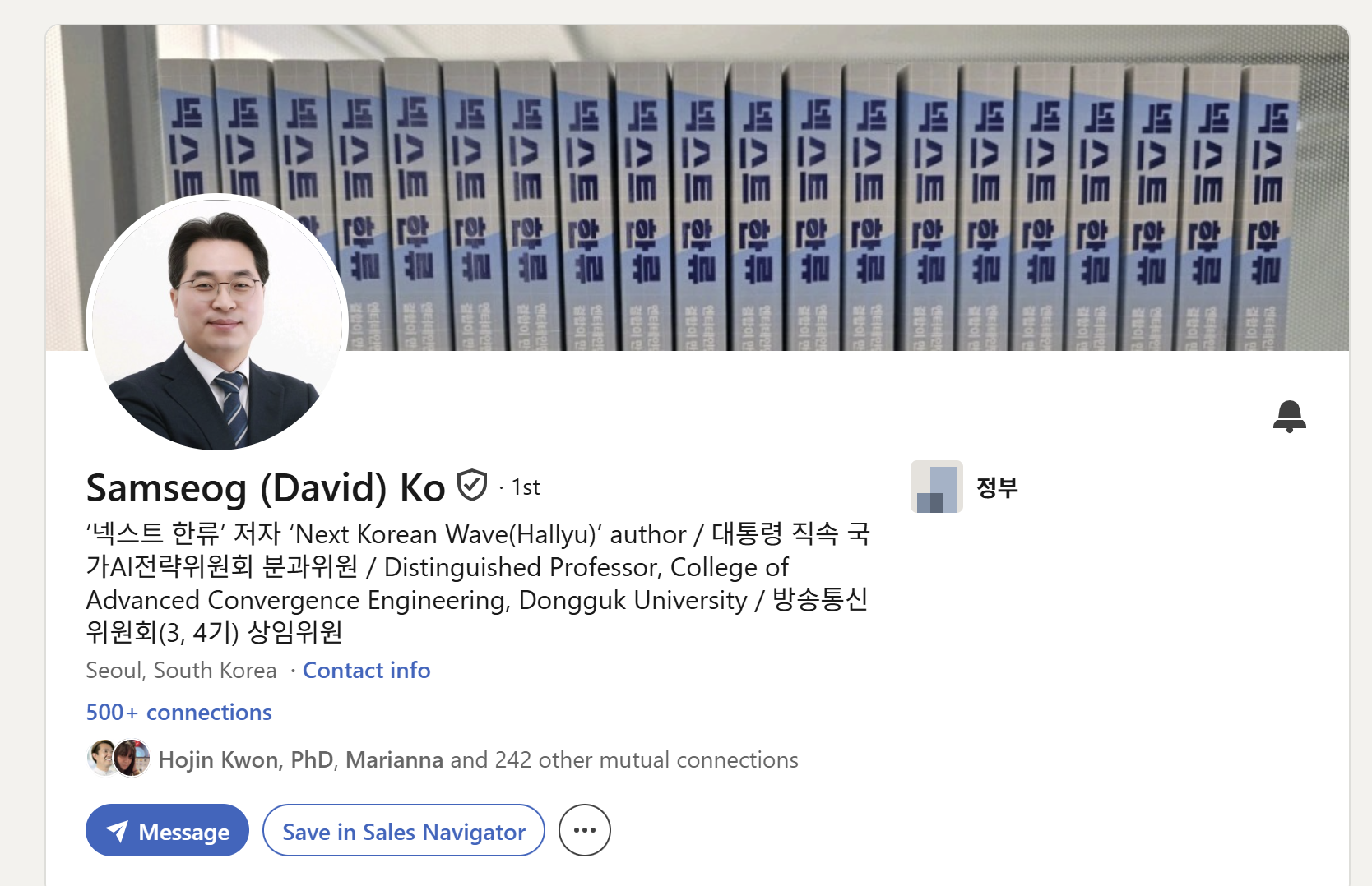 A leading expert in media, ICT, and AI policy, he previously served as Commissioner (Vice-Minister level) of the Korea Communications Commission (2014–2019) — the longest-serving political appointee in the commission's history — and as Senior Secretary for Innovation in the Presidential Secretariat, advising Presidents Kim Dae-jung, Roh Moo-hyun, and Moon Jae-in.