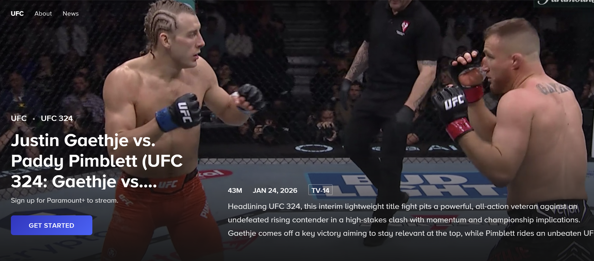 UFC 324, 파라마운트+ 독점 스트리밍 데뷔…496만 뷰어십 기록