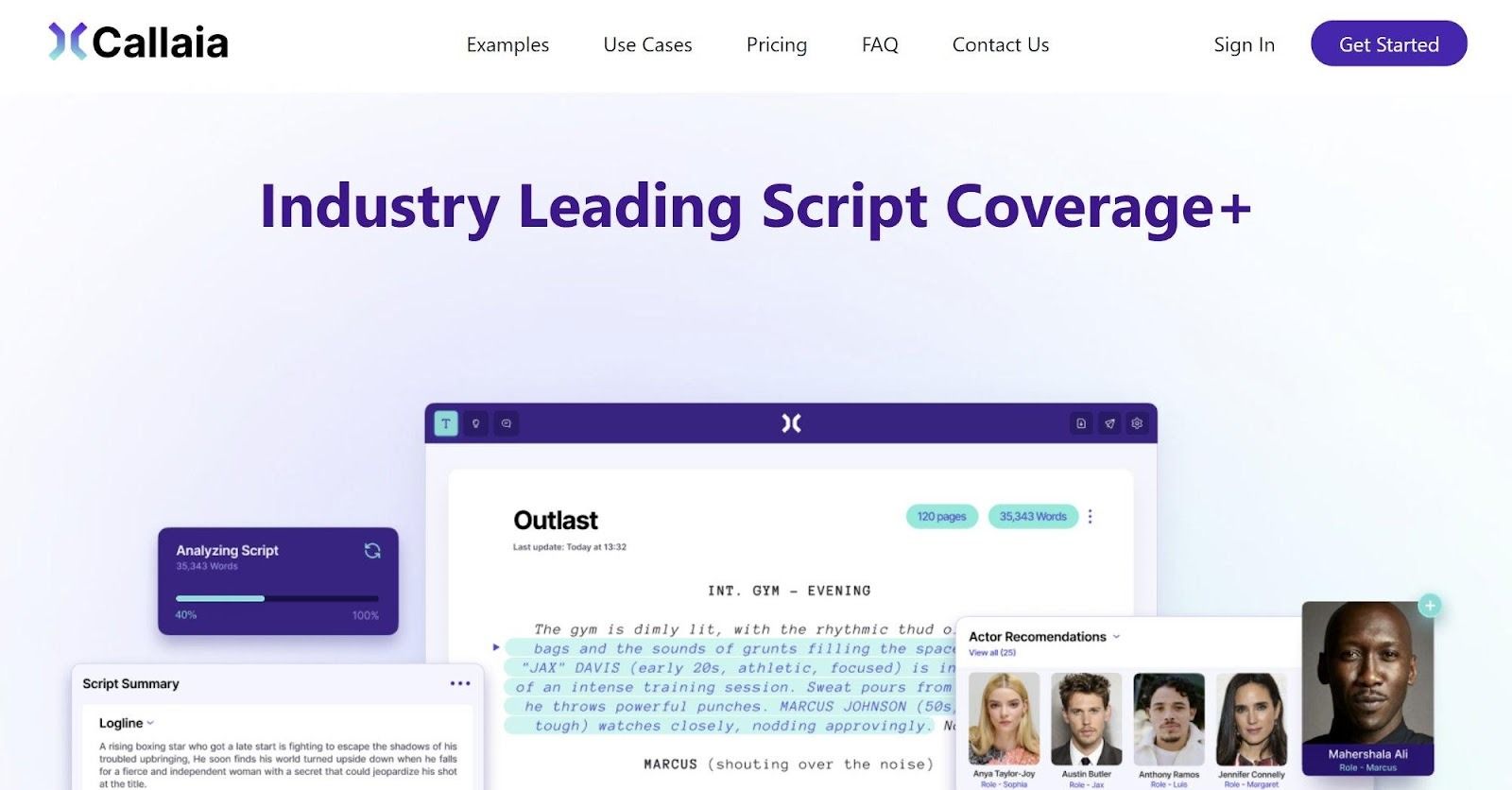▲ Callaia (callaia.ai) platform interface. Developed by Cinelytic, the AI script coverage tool analyzes a 120-page screenplay in under 60 seconds, delivering loglines, synopsis, character summaries, comps, and Actor Recommendations. ⓒ Callaia / Cinelytic