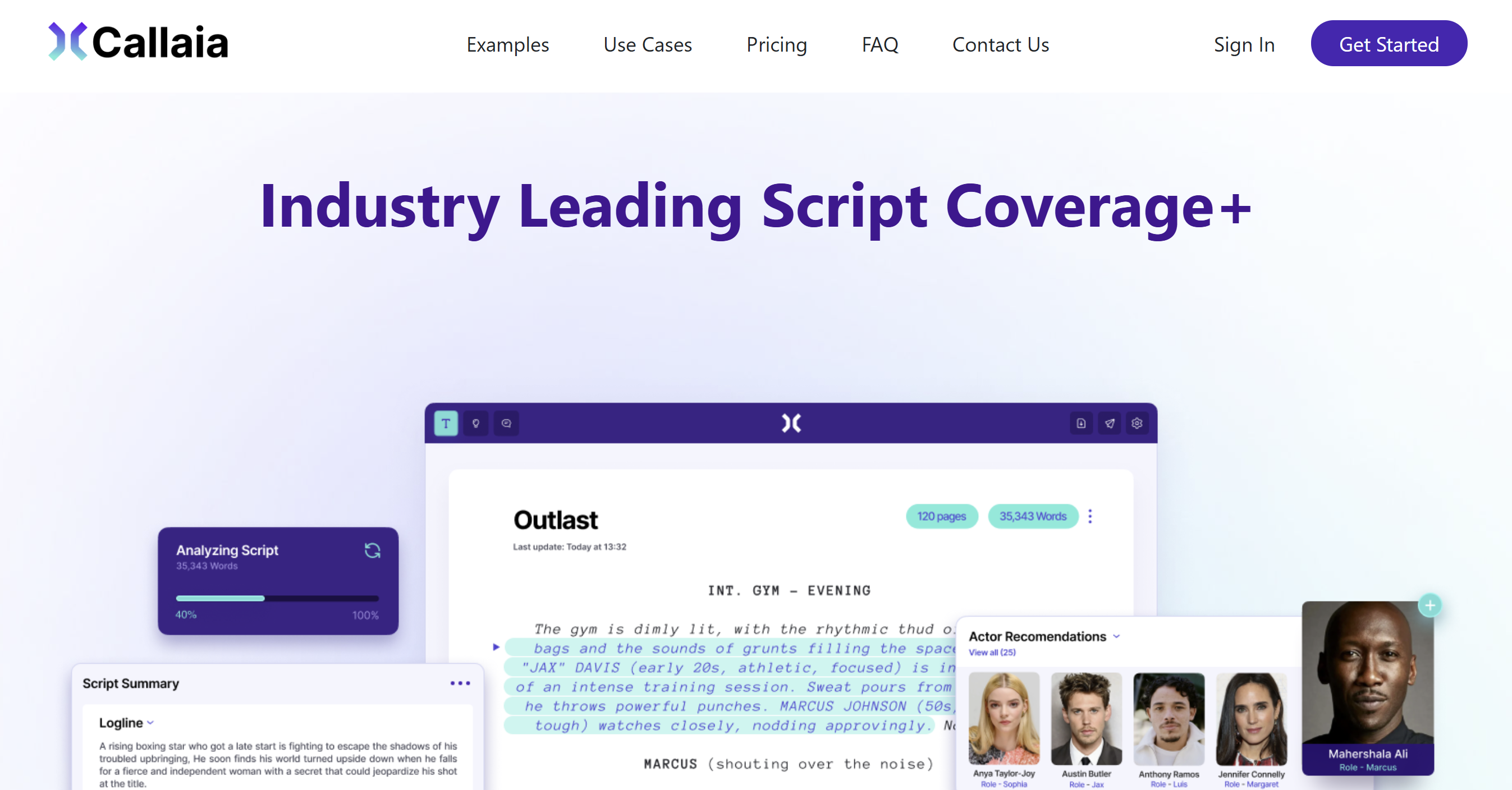 | 핵심 서비스 | AI 기반 스크립트 커버리지 자동 생성, IP 관리, 내러티브 분석 | AI 기반 각본 분석·커버리지, 재정 예측, 예산 분석, 관객 인사이트 | AI 스크립트 분석(Callaia) + 흥행 예측·재정 모델링·탤런트 분석(Cinelytic) |