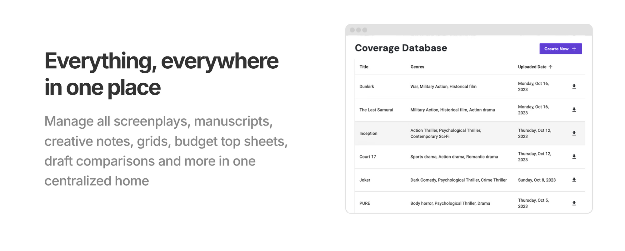 | 주요 고객 | 할리우드 스튜디오, 에이전시, 프로덕션 400+ 사 | 개인 작가, 프로듀서 | Sony Pictures, Lionsgate, Warner Bros. 등 메이저 스튜디오 |