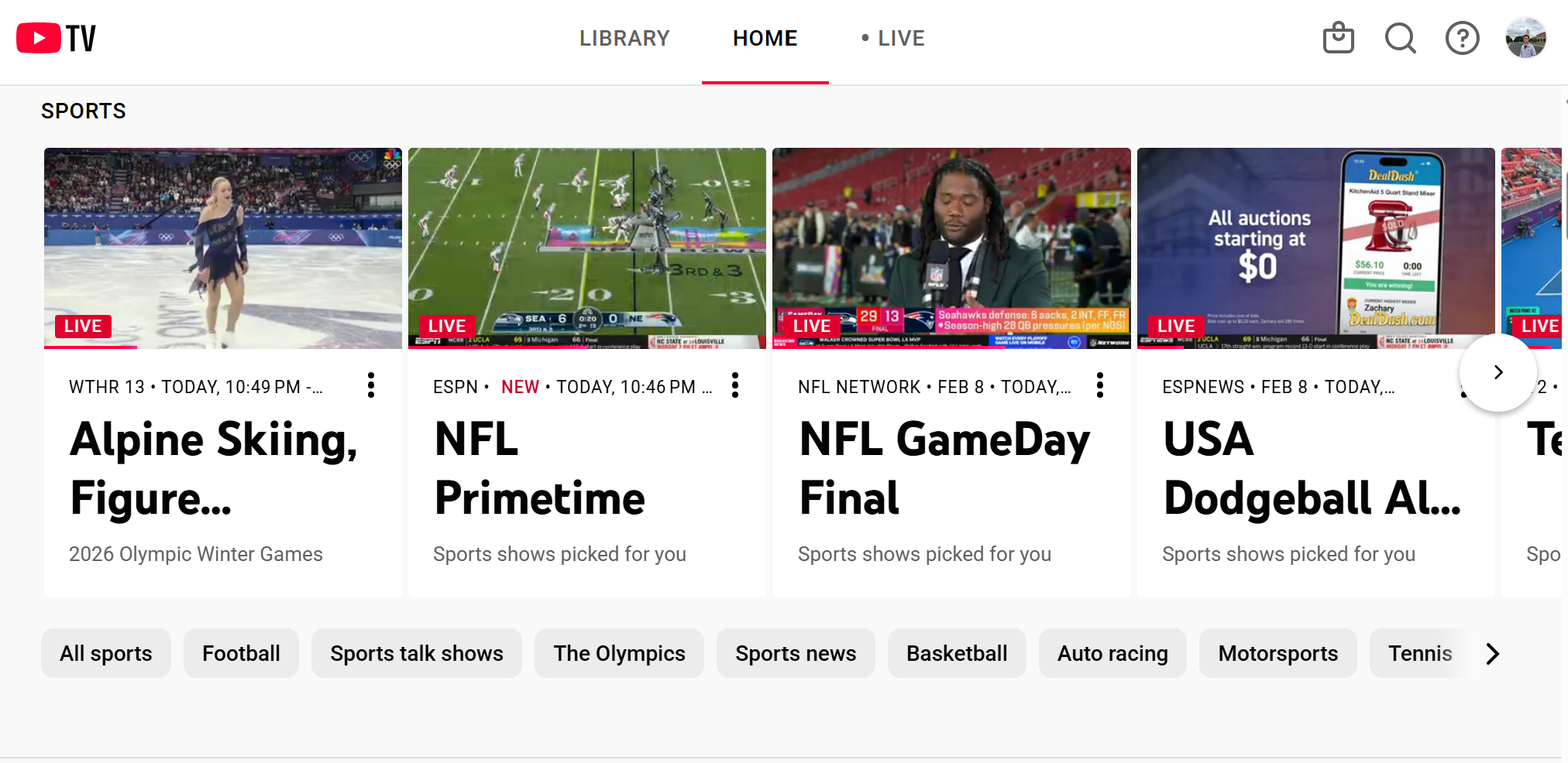 유튜브(YouTube), 스포츠 전용 TV 패키지 출시